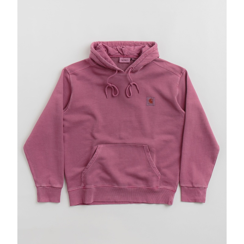 DescriptionCarhartt Nelson HoodieCarhartt Nelson Hoodie in Magenta. Garment dyed and tailored to a balloon-style fitting, this Carhartt hoodie is made from 100% cotton sweat. Featuring an adjustable diamond-quilted hood, shoulder panels and ribbed cuffs, t