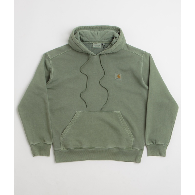 DescriptionCarhartt Nelson HoodieMade from 100% cotton sweat with an unbrushed finish, this Carhartt hoodie is pigment dyed for a lived-in look. It features an adjustable diamond-quilted hood, dropped shoulders, and ribbed cuffs for easy layering. Finished