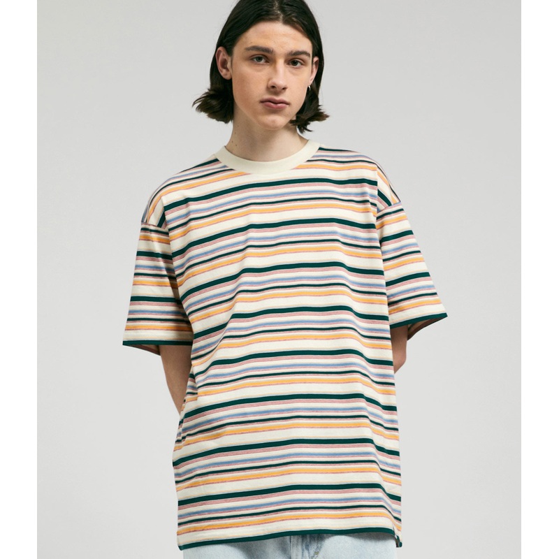 DescriptionCarhartt Riggs T-ShirtCarhartt Riggs T-Shirt in Riggs Stripe and Natural. Loose fitting and styled with a multi tonal yarn dyed striped finish, this new season Carhartt t-shirt is crafted from 100% cotton single jersey and features a resilient 1