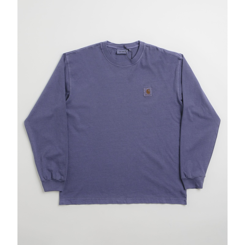 DescriptionCarhartt Vista Long Sleeve T-ShirtCarhartt Vista Long Sleeve T-Shirt in Aura. Loose fitting and made from 100% cotton, this garment dyed Carhartt t-shirt is designed with a flexible rib knit collar and ribbed cuffs. Finished in a shade of purple