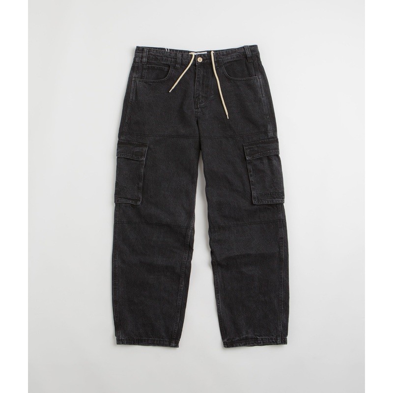 DescriptionCash Only Aleka Cargo JeansCash Only Aleka Cargo Jeans in Black. Ultra baggy fitting and made from 100% cotton denim, these tapered leg Cash Only jeans are designed with contrast stitching and an inner-drawstring adjustable waist. Featuring a si