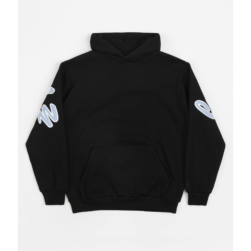 Cash Only Spell Out Hoodie in Black. Arriving as part of the brands latest collection, this regular fitting Cash Only hoodie is made from a heavyweight cotton-polyester blend. Featuring a split panel hood, dropped shoulders and rib knit cuffs, this black Cash Only hoodie is finished with a kangaroo front pocket and with nylon applique branding sewn across the shoulders on the reverse.