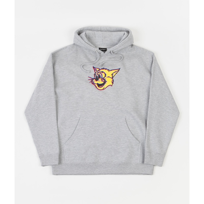 Cat Hoodie in Grey Heather. A heavyweight hoodie crafted from a blend of 70% premium-grade cotton and 30% polyester, this long-sleeve hoodie arrives as part of our own release for SP21. Tailored to a regular fitting to improve everyday comfort, this cuff-sleeved layer features a thick-rib elasticated hemline and a double-fleece lined hood above its drawcord-secured shoestring neckline. A spacious dual-entry kangaroo pocket can be found above the waist, whilst the printed yellow-cat character across the centre of the chest features neon-trimmed psychedelic overlays for added depth and contemporary appeal.