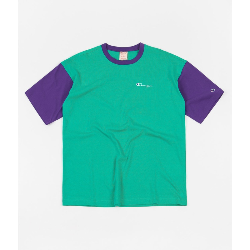 DescriptionChampion Oversize T-ShirtMade from soft 100% cotton this Oversize T-Shirt from Champion has a bold colour block aesthetic that includes a spring green coloured body and purple coloured short sleeves. Designed for casual everyday wear, the curved