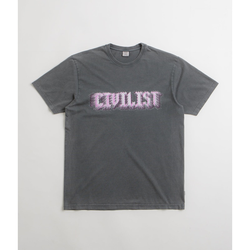 DescriptionCivilist Alien T-ShirtCivilist Alien T-Shirt in Pepper. Regular fitting and made from 100% cotton, this Civilist t-shirt is designed with a classic crew collar and a straight cut hem. Finished in grey with flag label branding and with printed br
