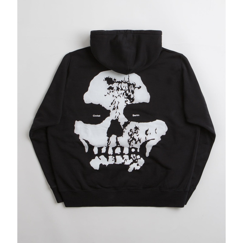 DescriptionCivilist Skull HoodieCivilist Skull Hoodie in Black. Regular fitting and made from 100% cotton, this Civilist hoodie is designed with an adjustable drawstring hood and dropped shoulders. Featuring printed front and rear graphics and a kangaroo f