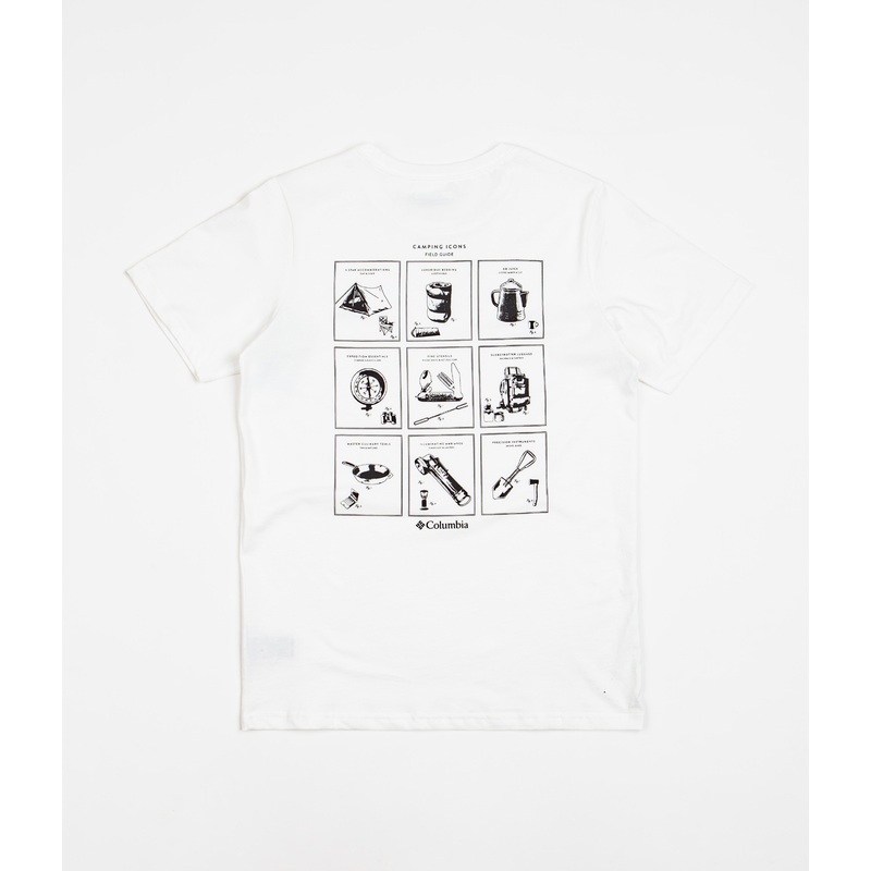 Columbia Rapid Ridge Back Graphic T-Shirt – White / Campsite Icons Graphic