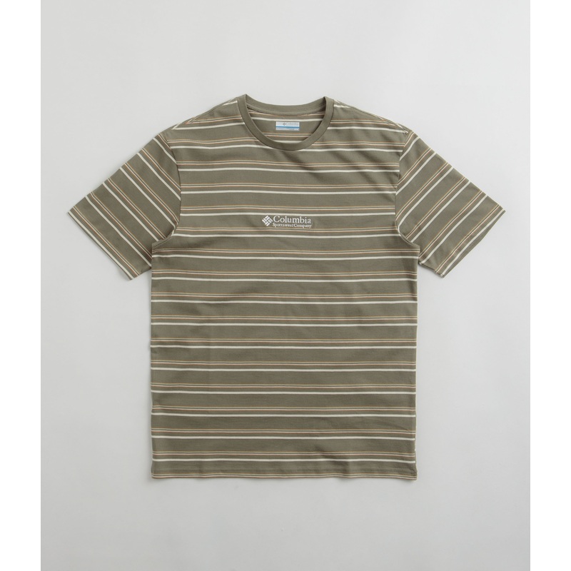 DescriptionColumbia Somer Slope Striped T-ShirtColumbia Somer Slope Striped T-Shirt in Stone Green. Regular fitting with an all-over striped pattern, this Columbia t-shirt is made from 100% cotton. Featuring a flexible rib knit collar and a straight cut he