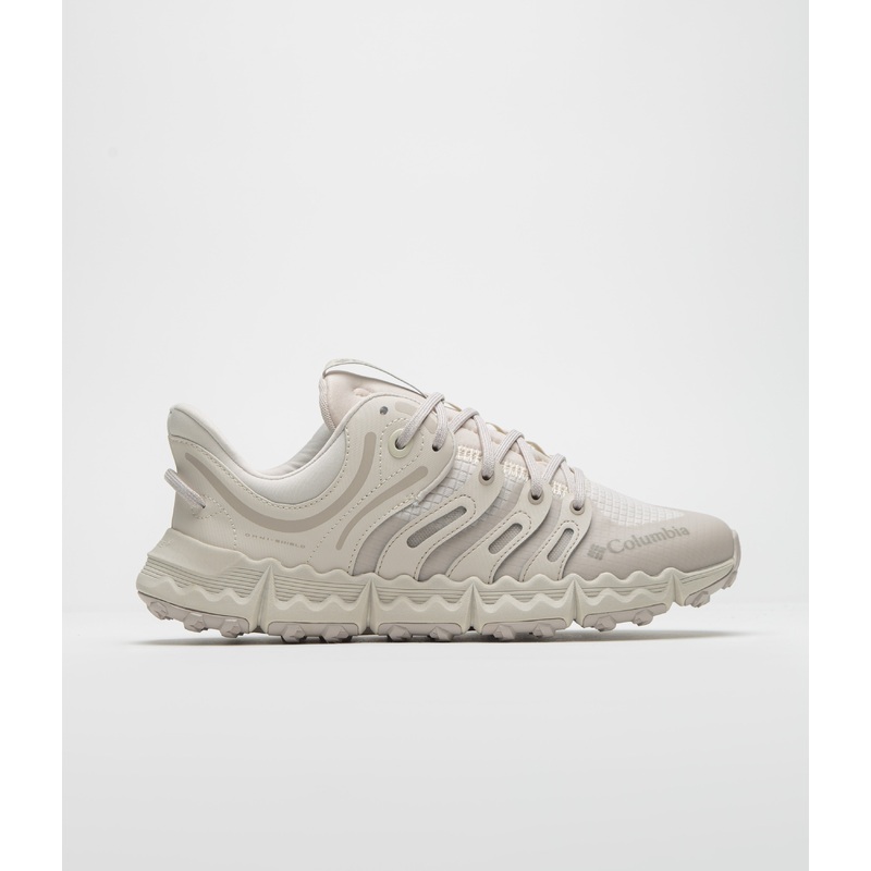 Columbia Voyager FLX PCT Shoes in Cloud Grey and Soft Taupe. Designed with mixed material uppers and an all-terrain ADAPT TRAX tread, this Columbia Voyager FLX PCT features OMNI-SHIELD protective overlays. Styled with TECHLITE+ cushioning and a sculpted rubber midsole, this beige grey Columbia Voyager FLX PCT is finished with a padded tongue, printed logos and a tonal rubber outsole.