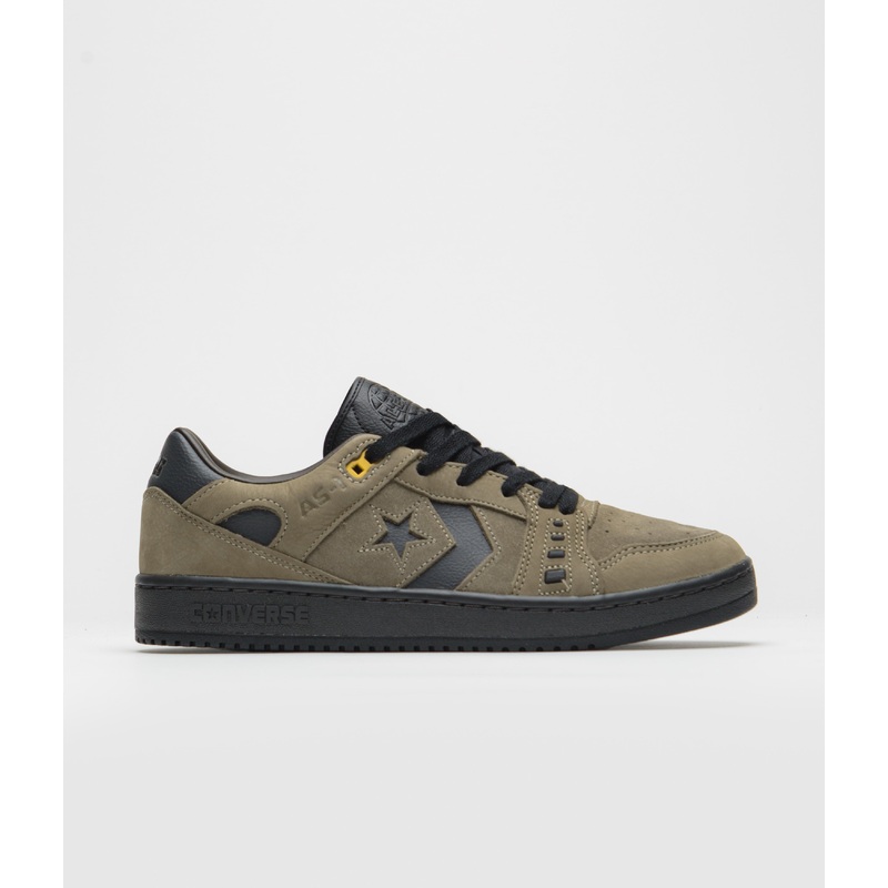 Converse AS-1 Pro Shoes in Green, Almost Black and Black. Designed by Alexis Sablone and inspired by 90s throwback styles, this Converse AS-1 Pro is styled with panelled rubber-backed suede and leather uppers. Featuring a perforated toe box, engineered GRASSHOPPER coring and cushioned CX foam sockliners, this khaki green Converse AS-1 Pro also features a herringbone tread and a full length cupsole stitch. Finished with rubber pod details, cut-out Chevron Star sidewalls, a black leather tongue and with embossed AS-1 eyestay branding.