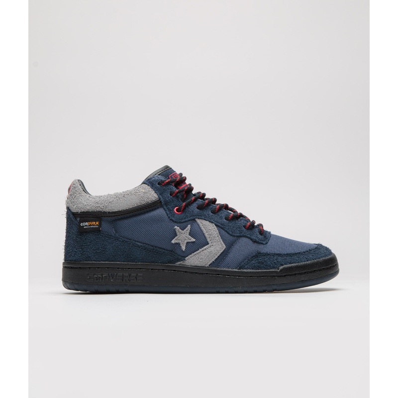 Converse Cons Fastbreak Pro Mid Shoes in Obsidian, Dark Waters and Black. Archive inspired with an outdoor-orientated construction, this Converse Cons Fastbreak Pro Mid is styled with suede and hairy suede uppers. Featuring heavy-duty Cordura underlays, hiking style laces and suede Chevron Star side walls, this blue Converse Cons Fastbreak Pro Mid is finished with a padded collar, woven tongue labels and with a classic cupsole construction.