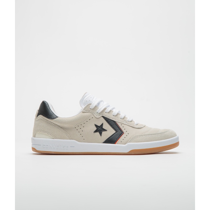 Converse Cons Louie Lopez Pro 2 Shoes in Egret, White and Orange. A Louie Lopez signature, this Converse Cons Louie Lopez Pro 2 is designed with a rubber-backed suede upper and a layered stitch toe box. Featuring a white leather tongue, a padded collar and CX foam support, this khaki Converse Louie Lopez Pro 2 is finished with a gum rubber outsole, a vulcanised construction and black Chevron Star midfoot detailing.