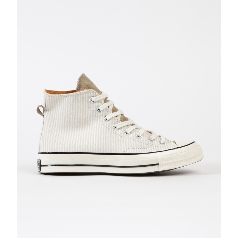 DescriptionConverse CTAS 70's Hi Hickory Stripe ShoesConverse CTAS 70's Hi Hickory Stripe Shoes in Desert Sand and Egret. Inspired by traditional workwear aesthetics, this hickory stripe Converse CTAS 70s Hi is styled with uppers made from at least 50% rec