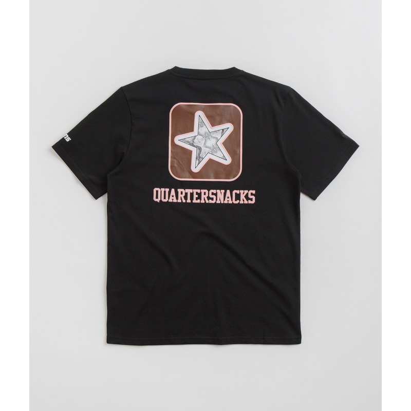 DescriptionConverse x Quartersnacks T-ShirtConverse x Quartersnacks T-Shirt in Converse Black. Tailored to a regular fitting, this Converse x Quartersnacks t-shirt draws inspiration from the archives and from classic NYC skate culture. Featuring a rib knit