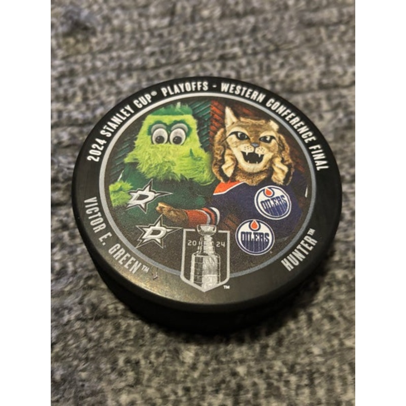 SpecificationsCategoryHockey > Training, Accessories, & Other > Pucks & BallsBrandOtherCondition NewQuantity1 available|||Seller DescriptionNew without Tags 2024 Stanley Cup Playoffs Official Mascot Match Up Hockey Puck Dallas Stars vs Edmont