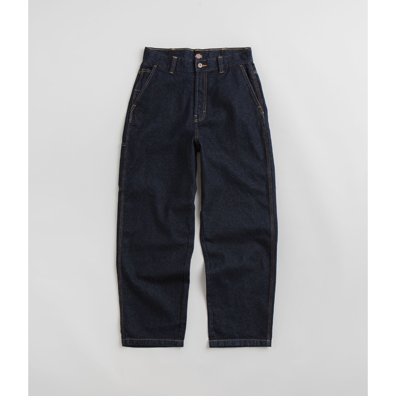 Dickies Madison Jeans in Rinsed. Tailored to a loose fitting with a relaxed cut, these Dickies jeans are made from 100% cotton denim with contrast stitching and a straight leg. Featuring a belt loop waistband, a single button secured zipper fly and a reinforced rear yoke, these rinsed denim Dickies jeans are finished with four classic pockets, a single utility pocket and woven flag label branding.