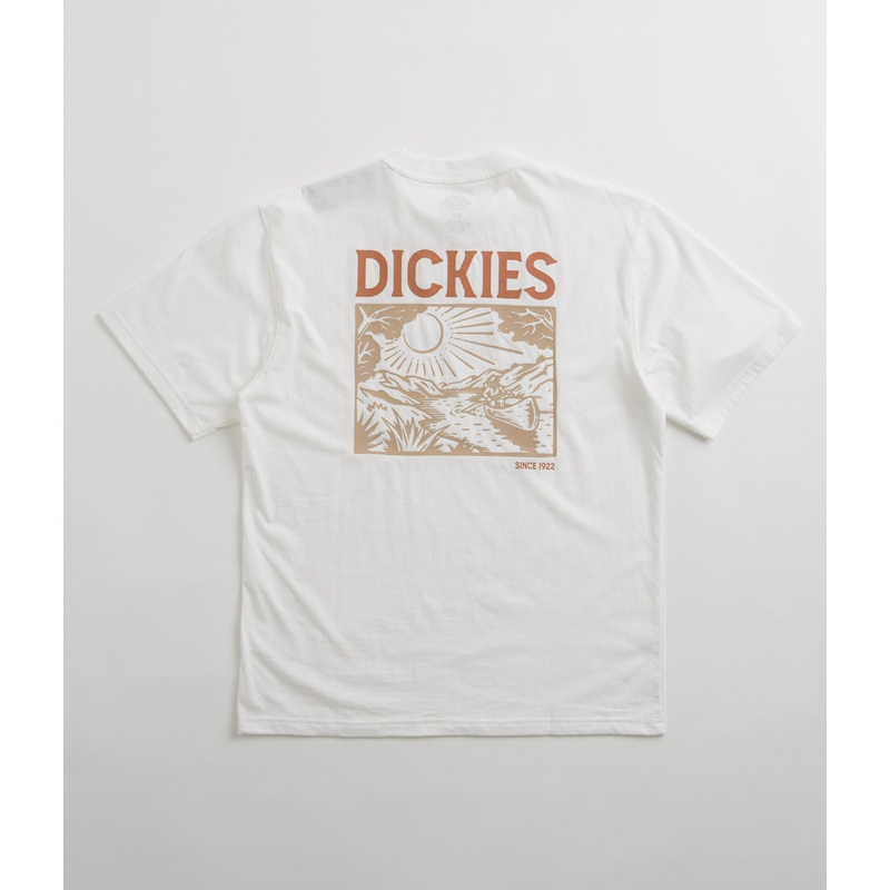 Dickies Patrick Springs T-Shirt in White. Made from 100% cotton, this new season Dickies t-shirt is tailored to a relaxed fitting. Featuring a flexible rib knit collar and a flag labelled hem, this white Dickies t-shirt is finished with printed front and rear graphics.