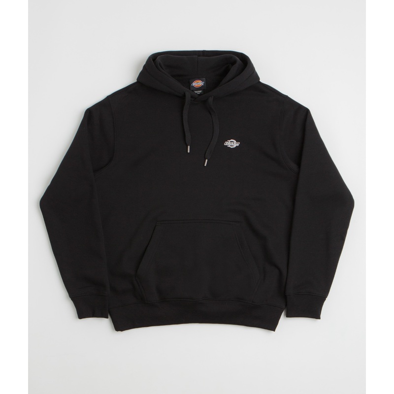 Dickies Summerdale Hoodie in Black. Tailored to a relaxed fitting from a cotton-polyester blend, this Dickies hoodie is designed with flatlock stitched seams and a drawstring hood. Featuring ribbed cuffs and a woven elastic hem, this black Dickies hoodie is finished with a kangaroo front pocket, woven flag label branding and with a printed left chest graphic.