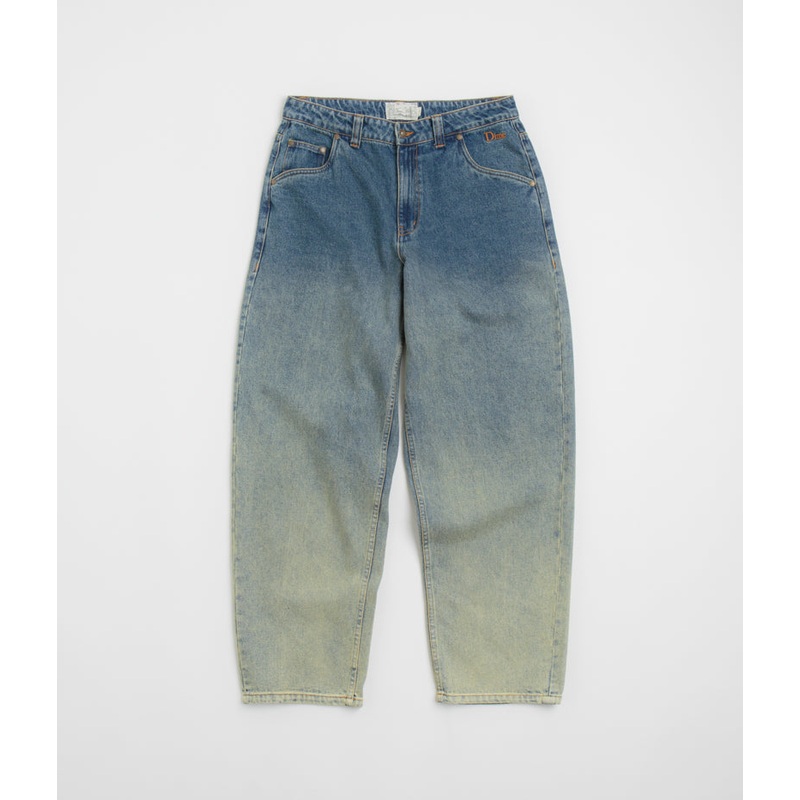 DescriptionDime Classic Baggy JeansDime Classic Baggy Jeans in Dipped Sandblasted Indigo. Baggy fitting with a straight leg, these Dime jeans are made from 100% cotton denim with an ombre-style pattern. Featuring a belt loop waistband, a zippered fly and t