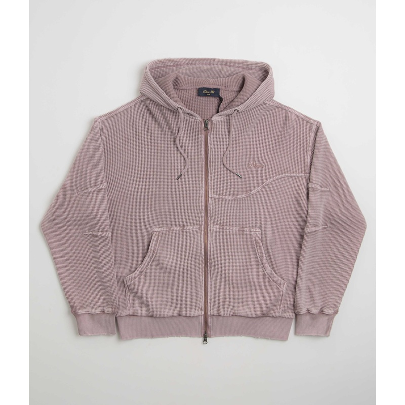 DescriptionDime Premium Waffle Full Zip HoodieDime Premium Waffle Full Zip Hoodie in Faded Mauve. Made from 100% cotton with an all-over waffle knit, this regular fitting Dime hoodie is designed with a stone washed construction. Featuring an adjustable hoo