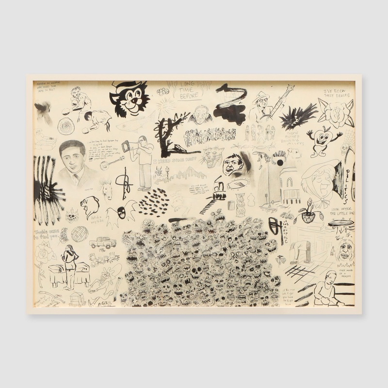 Mike Lottie Gigliottis artworks. Frames by Josh Pall.While Lotties practice has touched on painting, pottery, and watercolour, this exhibition returns to his roots, black ink pen on paper."Growing up, I was lucky to have parents who at one time owned a chi