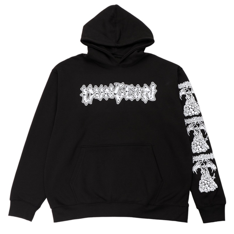 Working with brands such as Aries, Carhartt and Beams, artistFuneral French offers the newest range of Dungeon to Pass~Port Store & Gallery. The Dungeon Ritual Steel hood features a puff print on sleeve and front.Funeral FrenchArtworkSleeve and front print