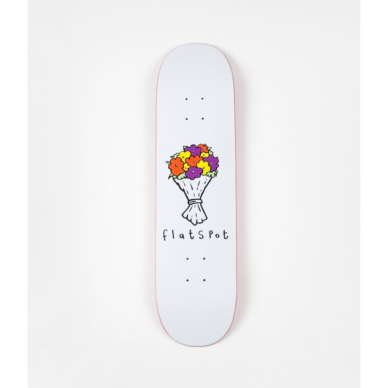 Description Flowers DeckCustomised with new artwork designed in house by the team, this 8.125" Flowers Deck is made from quality North American hard rock maple with a medium concave. The topside is plain with a full colour wash that varies between each mod