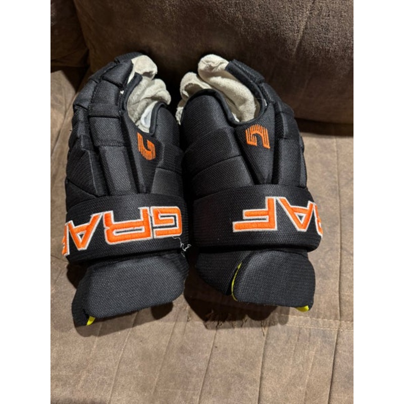 SpecificationsCategoryHockey > GlovesBrandGrafColor BlackCondition UsedSize 15"Age Group SeniorQuantity1 available|||Seller DescriptionUsed but in great shape. A little loose stitching by the logo on one glove; some minor scuffing in the palm of on
