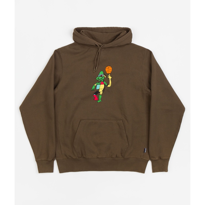 GX1000 Ball Is Lyfe Hoodie in Chocolate. Made from 100% heavyweight jersey fleece with a revised fit, this new season GX1000 hoodie is styled with ribbed side panels and a classic drawstring hood. Featuring cuffed sleeves, a thick rib woven elastic hemline and a kangaroo front pocket, this chocolate brown GX1000 hoodie is finished with a woven side seam flag label, embroidered GX1000 hood branding and with a large turtle character embroidered across the centre chest.