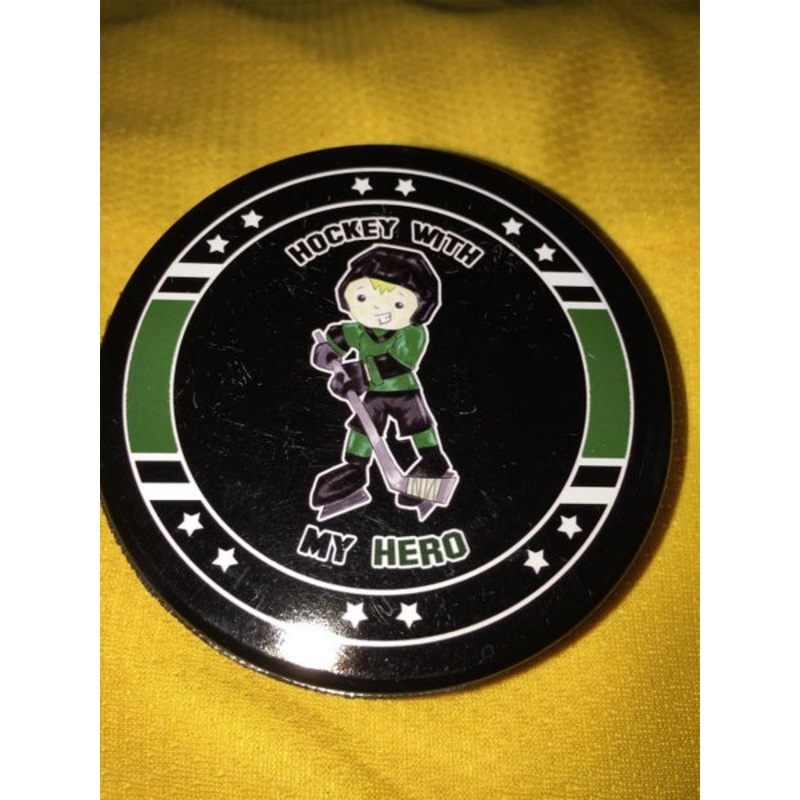 HOCKEY WITH MY HERO HOCKEY PUCK BLANK BACK SIDE