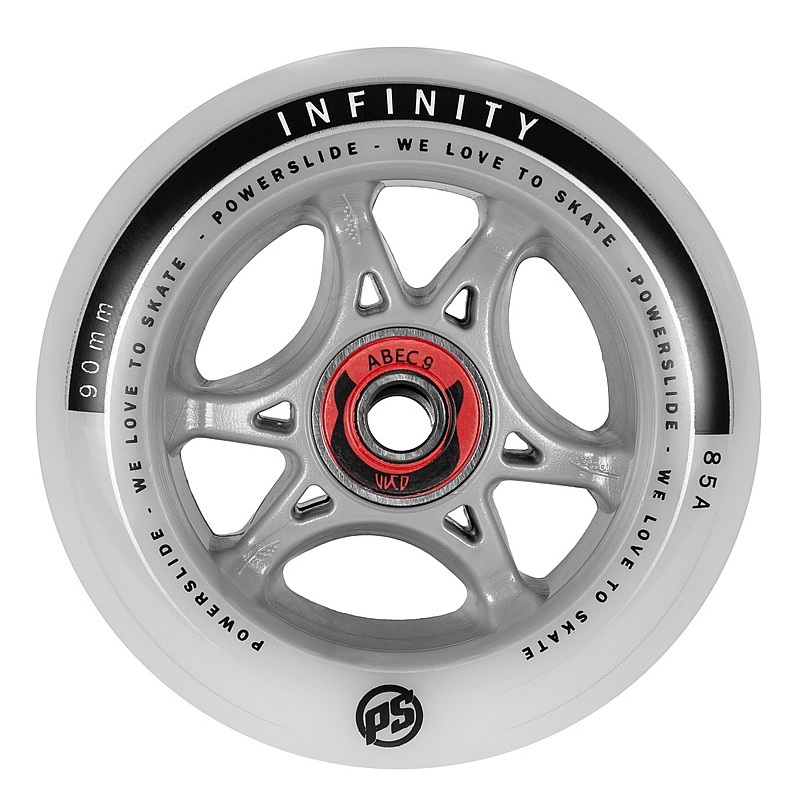 Kompletn inline koleko Powerslide Infinity RTR (ready to roll) ve velikosti 90mmatvrdosti85A se dvma loisky Wicked ABEC 9 a Spacerem pro 8mm rouby.