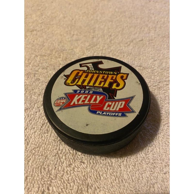 SpecificationsCategoryHockey > Training, Accessories, & Other > Pucks & BallsBrandOtherCondition NewQuantity1 available|||Seller DescriptionNew Johnstown Chiefs East Coast Hockey League (ECHL) 2000 Kelly Cup Playoffs Hockey Logo Puck Official