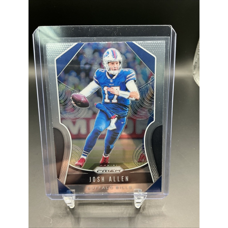 The product is a 2019 Panini Prizm base 2nd year trading card featuring Buffalo Bills player Josh Allen. This original card, made of card stock, is part of the base set for the National Football League (NFL) season. It is a standard-sized sports trading card manufactured by Panini, with the card number being #3. This collectible item is a great addition for football fans and trading card enthusiasts looking to add a piece of memorabilia from the 2019 season to their collection.