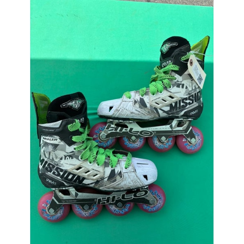 SpecificationsCategoryHockey > Inline, Roller & Street > Inline SkatesBrandMissionModelInhaler WM02Condition UsedSkate Size 4.5Skate Width E&W (Wide)Age Group JuniorQuantity1 available|||Seller DescriptionThis item offers proven performance a