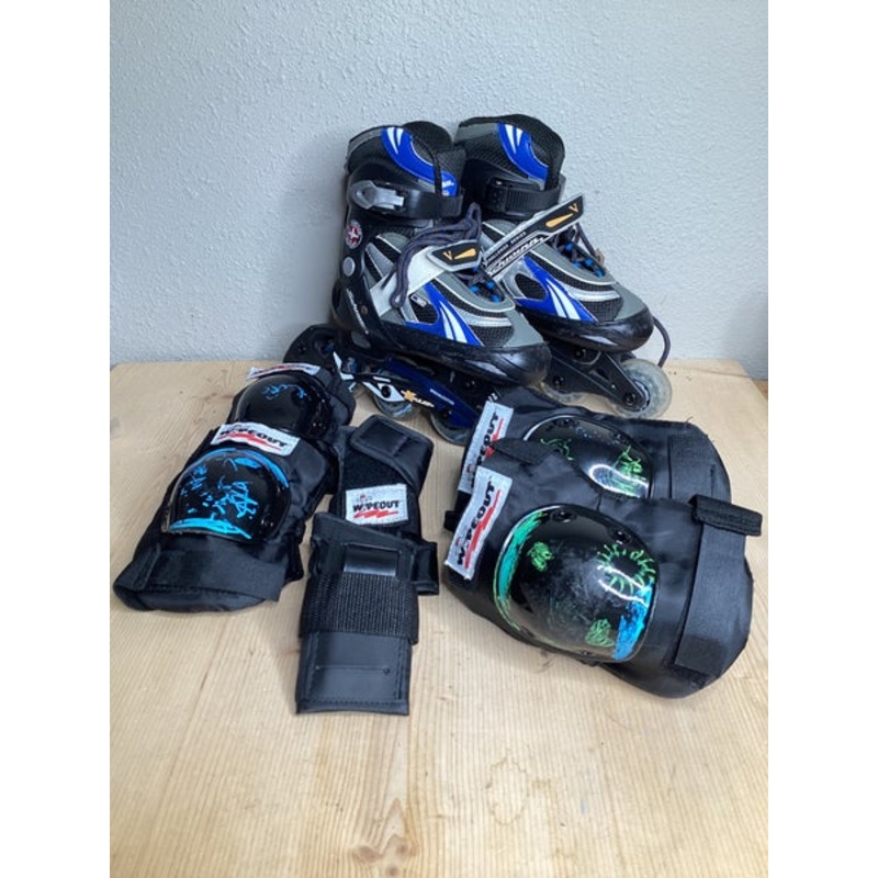 Junior Schwinn Inline Skates Regular Width (Used) Adjustable 1-4 W/Knee/Elbow/Wrist Guard