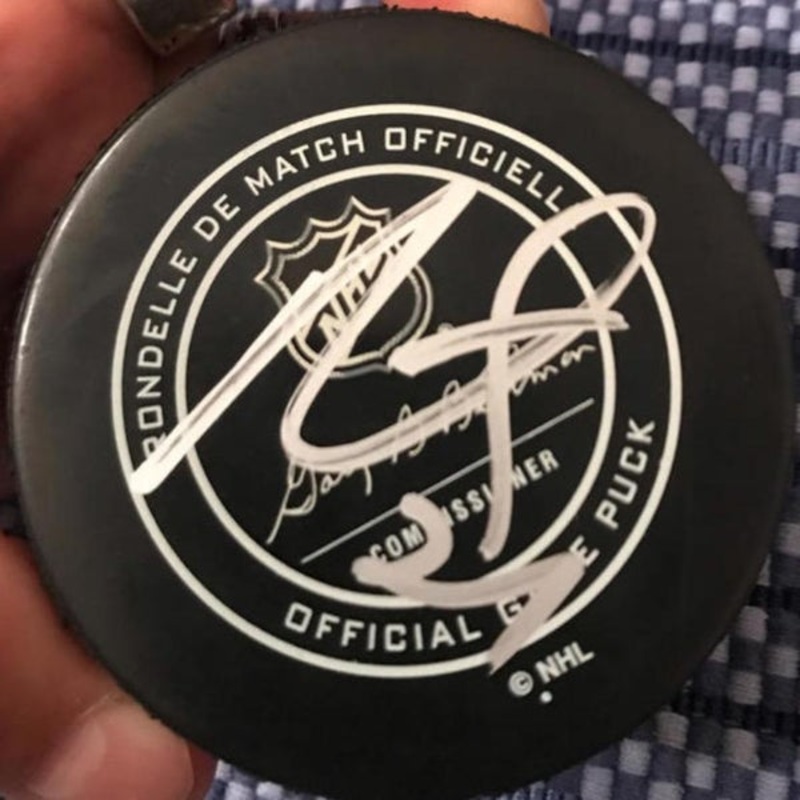 Game used puck that flew out of play! 11-25-18 LA vs Edmonton Oilers after the game I got Alec Martinez 2 time Stanley Cup winner to sign the puck!!
