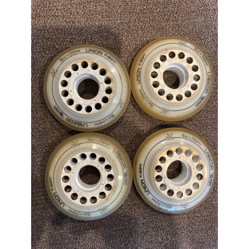 SpecificationsCategoryInline, Roller & Street Hockey > WheelsBrandOtherCondition UsedQuantity1 available|||Seller DescriptionAs shown good condition Labeda Union X-soft Qty 4 76mm wheels