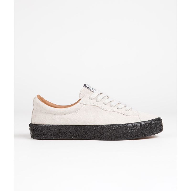 Last Resort AB VM002 Shoes in White and Black. Inspired by vintage colourways, this Last Resort AB VM002 is styled with washed white suede uppers, a padded PU collar and a classic canvas lined interior. Featuring a flat cotton lacing system, an overlaid toe box and a flag labelled tongue, this VM002 skate shoe also features a textured black rubber midsole and a multi-directional logo tread gum rubber outsole. Finished with printed insoles and with rubber licence plates displayed across each heel.