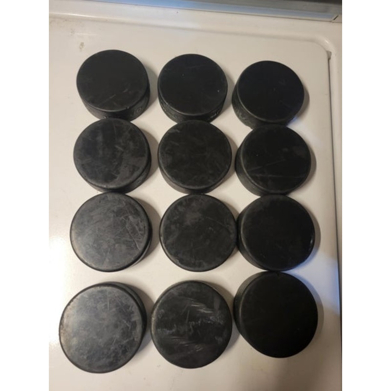 SpecificationsCategoryHockey > Training, Accessories, & Other > Pucks & BallsBrandOtherCondition UsedQuantity1 available|||Seller DescriptionSlightly Used Lot of 12 Ice Hockey Pucks Color: Black Pucks are in good condition but may have marks