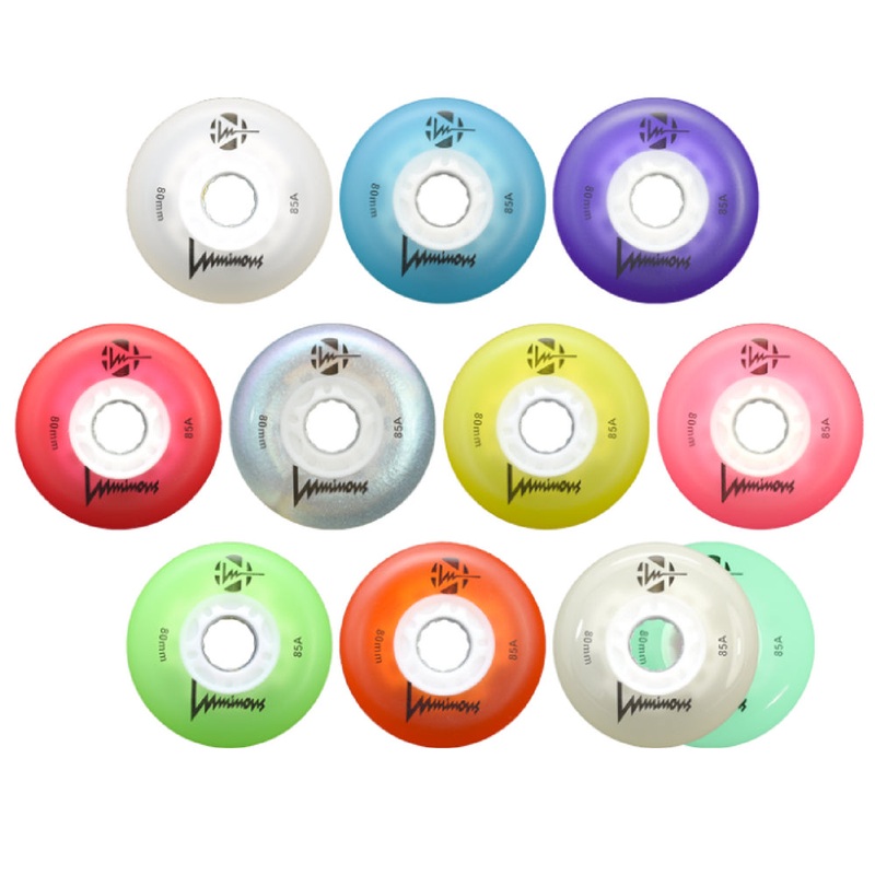 Details These 80mm LED inline skate wheels from Luminouslight up as you skate. As the wheels rotate they glow and light up brightly! These are great for night skating and rink skating to add some fun to your ride. The light is generated by a magnetic strip