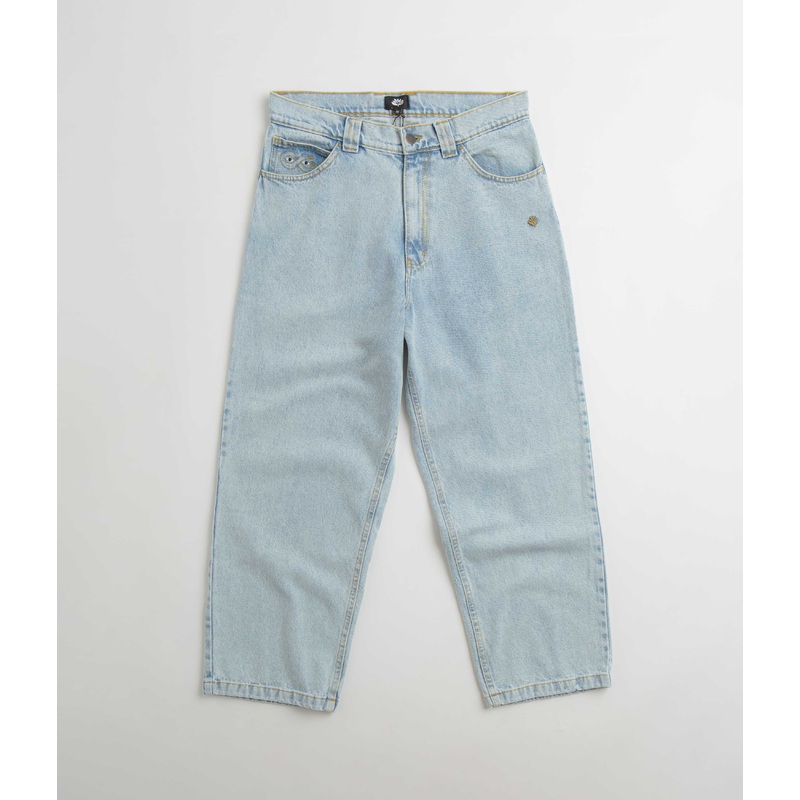 Magenta OG 2 Tone Jeans in Washed Denim and Orange. Made from 100% cotton denim and tailored to an extra baggy fitting, these Magenta jeans are styled with a classic belt loop waist and a washed fabrication. Featuring a single button secured zipper fly, two front pockets, two rear pockets and an integrated coin pocket, these blue Magenta jeans are finished with an OG denim paper tag and embroidered logo detailing.