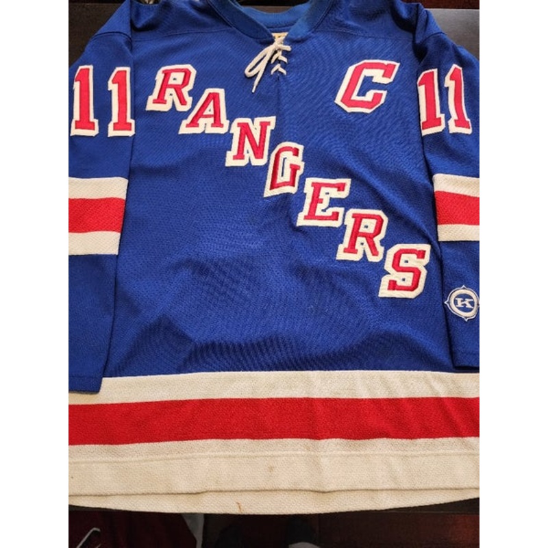 SpecificationsCategoryHockey > Protective > Neck Guards, Wrist Guards, Padded Shirts & OtherBrandKohoCondition UsedAge Group SeniorColor BlueQuantity1 available|||Seller DescriptionMark Messier New York Rangers XXL Jersey Vintage Koho Good Condit