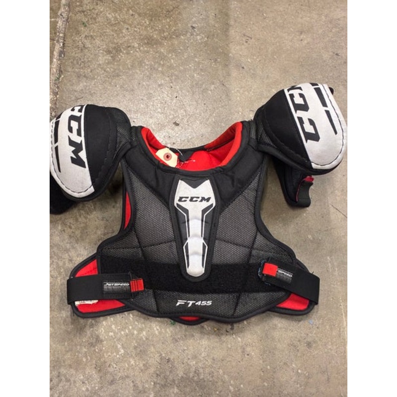 SpecificationsCategoryHockey > Protective > Shoulder PadsBrandCCMModelJetspeed FT455Condition UsedAge Group JuniorSize MediumQuantity1 available|||Seller DescriptionThis item offers proven performance at exceptional value. It shows the character mark