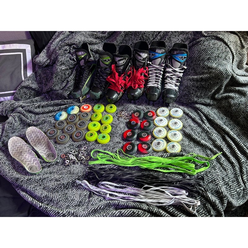 SpecificationsCategoryHockey > Inline, Roller & Street > Inline SkatesBrandMissionModelAxiom T6Age Group UnknownSkate Width UnknownSkate Size 11.5Condition UsedQuantity1 available|||Seller DescriptionT7s ,t6s ,ac3s ,2 sets of out side wheels , 2