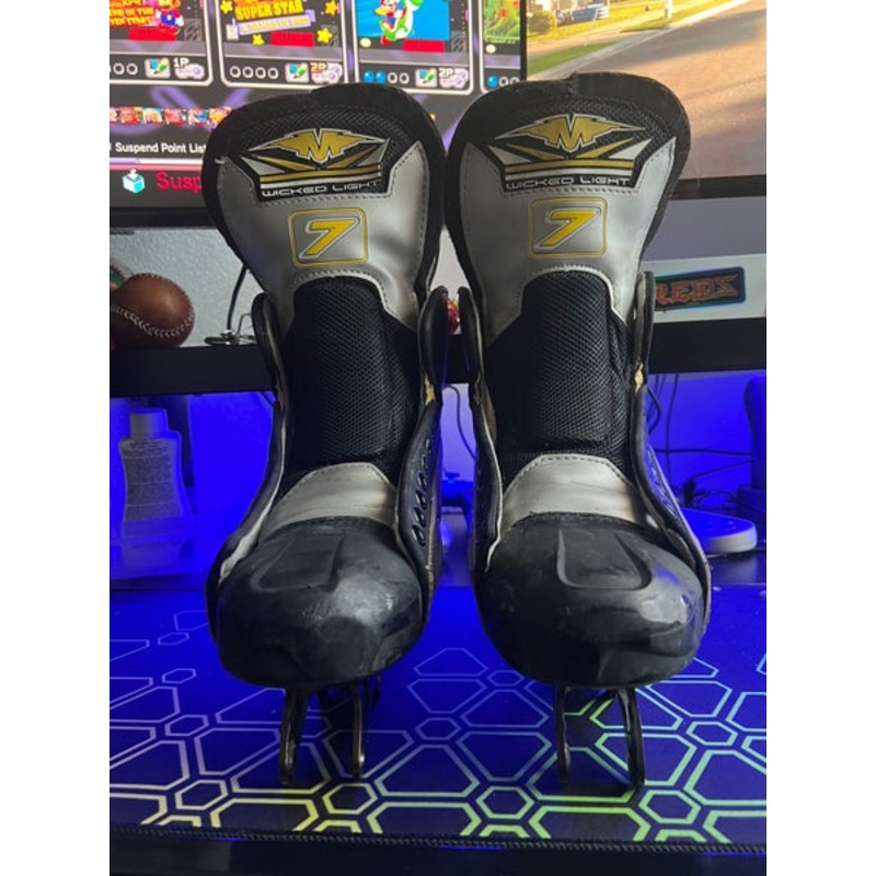 SpecificationsCategoryHockey > Inline, Roller & Street > Inline SkatesBrandMissionModelWicked LightCondition UsedSkate Size 11.0Skate Width D&R (Regular)Age Group SeniorQuantity1 available|||Seller DescriptionChassis: Mission Hi-Lo Vanguard e