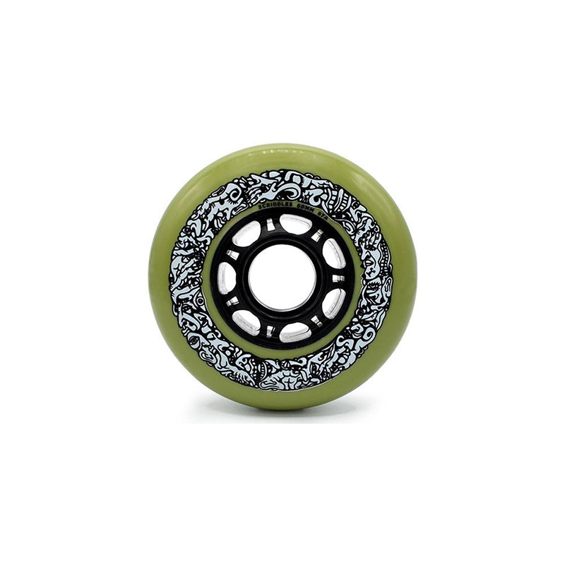 The MB Scribbles are the classic big wheel size traditionally used for freestyle, slalom, and freeride skating. This wheel became MB canon during the filming of BIG WHEELS and BIG WHEELS 2, where our first experiments of mixing slalom, aggressive, and big wheel skating began. The 87a hardness is a perfect mix of comfy cruising, grippy turning, and fun sliding. 80mm wheels can be used on various boots and frames including futuristic skate tools like the PR80 Wizard Frame (an incredible flat ground tool) and the Aeon 80 Skate (an aggressive/big wheel hybrid skate like no other). These are your shortcut to fun without being tied down to any specific skating category. So pop them in and scribble with your feet..