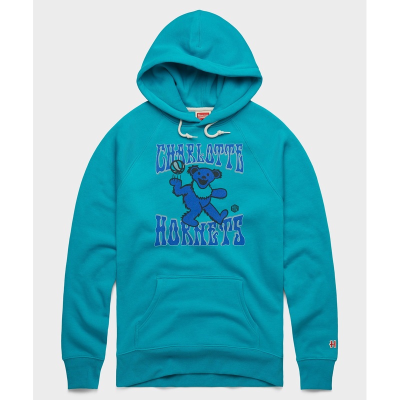 Climb aboard the bus for HOMAGEs grooviest collaboration yet: our Grateful Dead xCharlotte Hornets remix hoodie. Dunk one for the Deadheads young and old who have big love for hoops, Jerry Garcia and long, strange trips to the O and beyond. Pay homage.