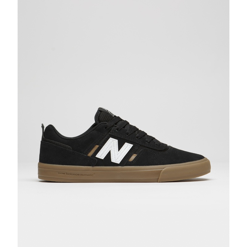 New Balance Numeric 306 Jamie Foy Shoes in Black and Gum. Skater Jamie Foys signature model, the New Balance Numeric 306 is styled with black suede uppers and tonal mesh underlays. Featuring moulded EVA ABZORB insoles, an auxetic rubber NDurance outsole and a multi-directional underfoot tread, this black and gum New Balance 306 Jamie Foy is finished with white leather N logos, woven tongue labels and with woven heel tabs.