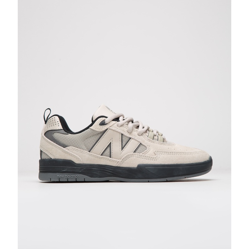 New Balance Numeric 808 Tiago Lemos Shoes in Cream and Black. Tiago Lemos second signature, this New Balance Numeric 808 is designed with panelled suede and mesh uppers with a perforated toe box. Featuring a reinforced toe cap, tongue-centreing straps, internal foam pods and a full length ABZORB midsole, this beige New Balance Numeric 808 is finished with a modified herringbone tread pattern, a rubber outsole and with woven nylon heel pulls.