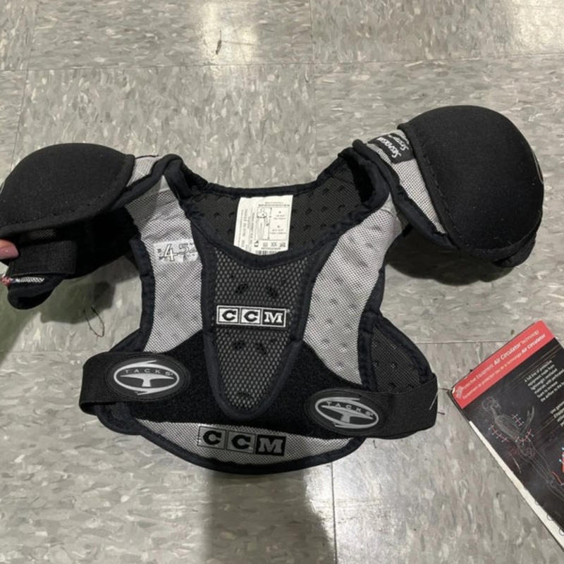 SpecificationsCategoryHockey > Protective > Shoulder PadsBrandCCMModelTacks 452Age Group YouthCondition NewSize MediumQuantity1 available|||Seller DescriptionThis item is brand new, is in the original packaging and/or has the original tags attached,
